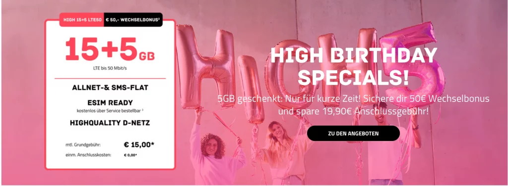 Startseite » High Mobile 15GB + 5GB Aktion ExpiredHigh Mobile 15GB + 5GB Aktion ab 3,00 € 29,00 € zum Deal ab 3,00 € 29,00 € zum Deal High Mobile Sonder Aktion Jeden Monat exklusive Business Deals Whatsapp Newsletter
